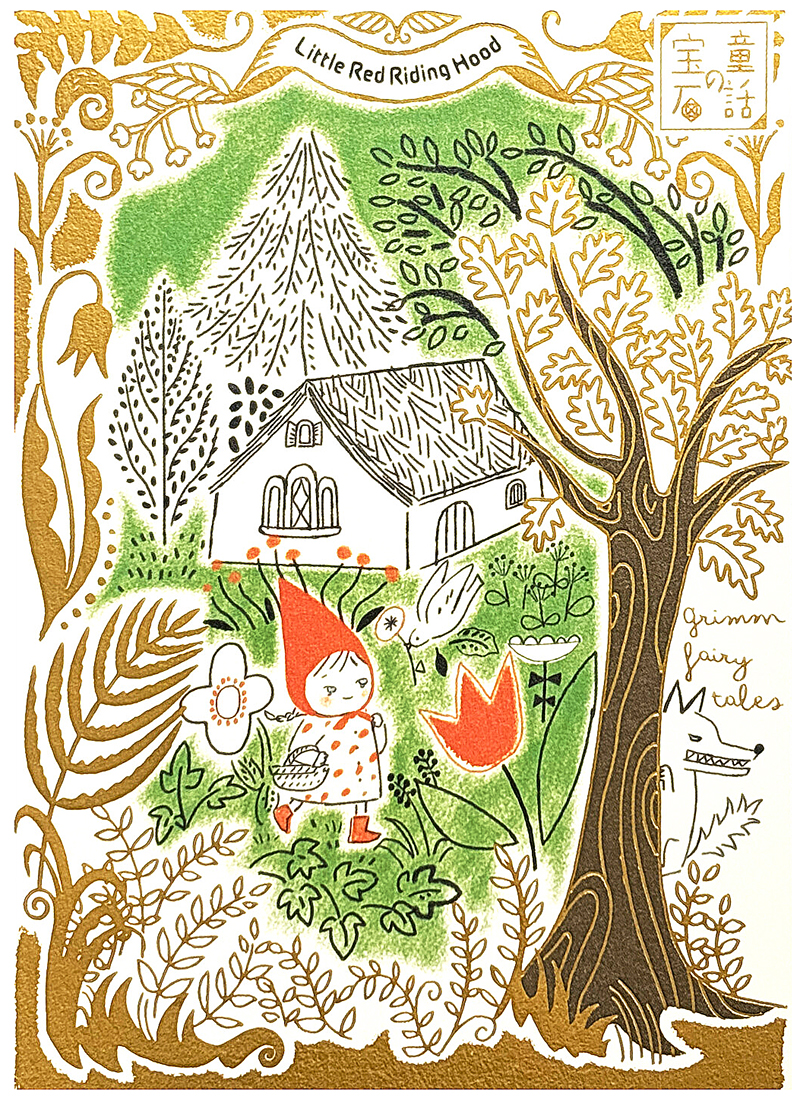 Shinzi Katoh Red Riding Hood Cottage Gold Foil Postcard